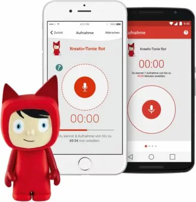 Mit der dazugehörigen, kostenlosen Smartphone-App können eigene Sprachaufnahmen aufgezeichnet und dem Kreativ-Tonie zugewiesen werden.